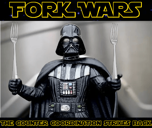 In digital systems such as blockchains (this could also be applied to more mainstream systems, eg. DNS), a major and crucially important form of counter-coordination is forking.