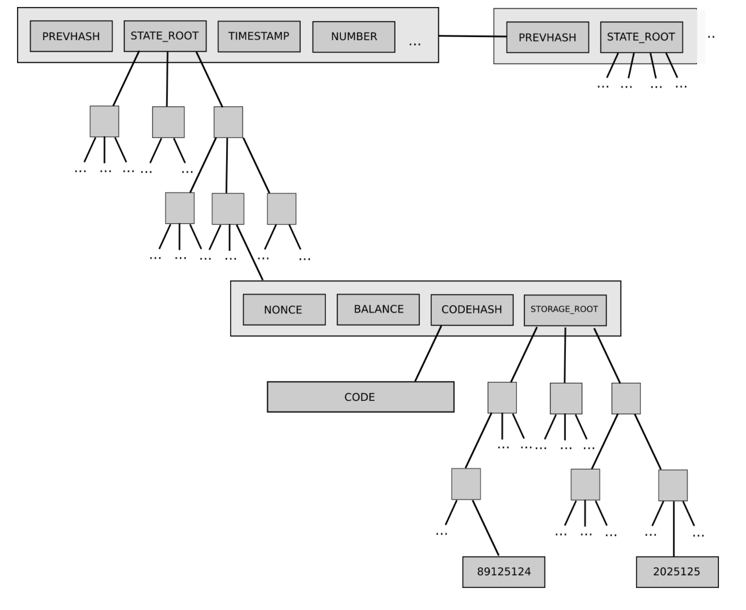 One example of the latter is Ethereum's current two-level state tree, which features a tree of account objects, where each account object in turn has its own storage tree.
