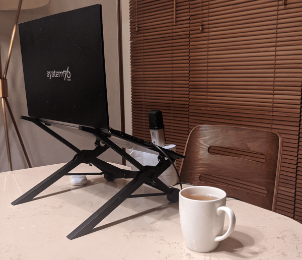 Next, my laptop stand. Laptop stands are great for improving your posture. I have two recommendations for laptop stands, one medium-effective but very light on cm3, and one very effective but heavier on cm3.