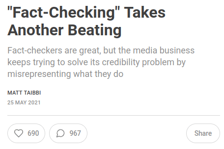 Honestly, some pretty widespread distrust of fact-checking as a concept. One strategy here is to say: ignore the haters, remember that the fact checking experts really do know the facts better than any voting system, and stay the course. But going all-in on this approach seems risky. There is value in building cross-tribal institutions that are at least somewhat respected by everyone. As with William Blackstone's dictum and the courts, it feels to me that maintaining such respect requires a system that commits far more sins of omission than it does sins of commission. And so it seems valuable to me that there is at least one major organization that is taking this alternate path, and treating its rare cross-tribal respect as a resource to be cherished and built upon.