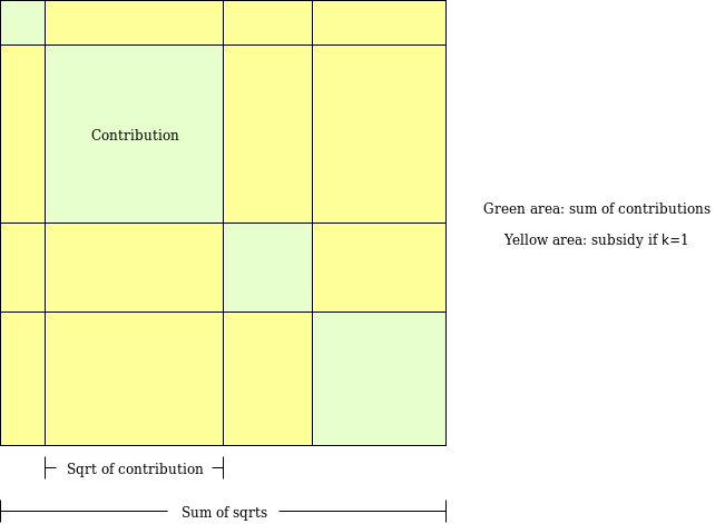 To give a view of what this would mean in practice, let's explore an algorithm I came up with a few years ago for a similar purpose: pairwise-bounded quadratic funding.