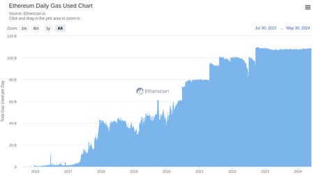 Ethereum actually did end up taking a medium-block approach: the chain's capacity has increased by roughly 5.3x since it launched in 2015 (perhaps 7x if you count calldata repricings and blobs), and at the same time fees increased from almost nothing to a significant-but-not-too-high level.